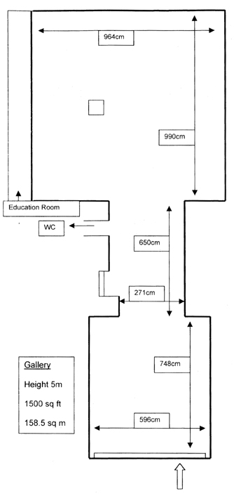 | Rear wall to large space (964 cms) : | Has doorway to studios and Creek halfway along |